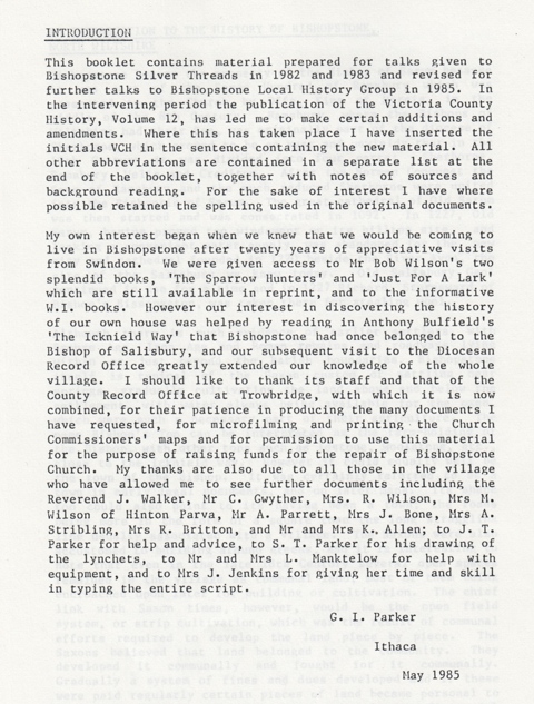 This is a remarkably good piece of research by G. Parker from 1985, a period when information was not so easily available. It is a good starting point for anyone researching the history of this charming little village.