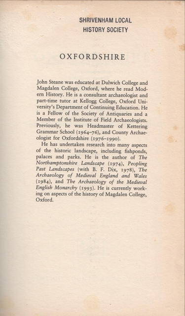 An interesting book on the county of Oxfordshire as a whole but with a strong slant towards history and archaeology. Plenty of photos in the middle.