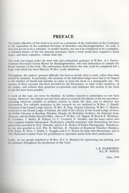 This book is a culmination of collaborative research by Freemasons of the Masonic Provinces of Berkshire and Buckinghamshire. Anyone who is interested in Frremasonry will find this book most informative. This copy is No166 of a limited edition.