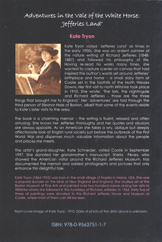 This is a delightful book that details the travels of Kate Tryon in the early part of the 20th century. It features her original paintings and photographs from the around the area of Richard Jefferies. It is number 22 in a limited edition of 100 that was printed in 2010.