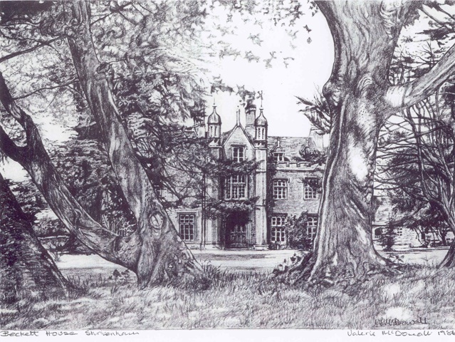 A rather pleasant sketch of the front part of Beckett House by BA Blackwell in 1983